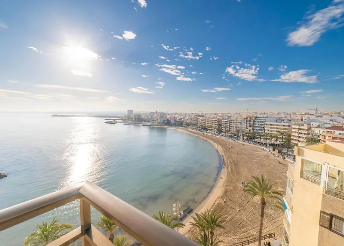 Frontline Apartment Sea Views - Pool - Center é um apartamento à beira-mar localizado em Torrevieja, 5 minutos de distância de Asociación Más Amigos. Este apartamento à beira-mar possui 2 quartos, 2 casas de banho e cozinha totalmente equipada.